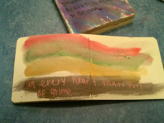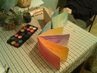 - Using watercolors, paint over the writing and drawing to illustrate the pages. Experiment with different techniques for painting and writing.