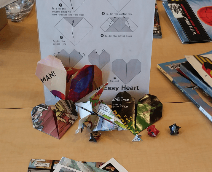 Notes: Popular choices among teens I worked with included: balloon, fox, easy heart, and easy fish. A great site for visual templates is: Paper Origami Blog